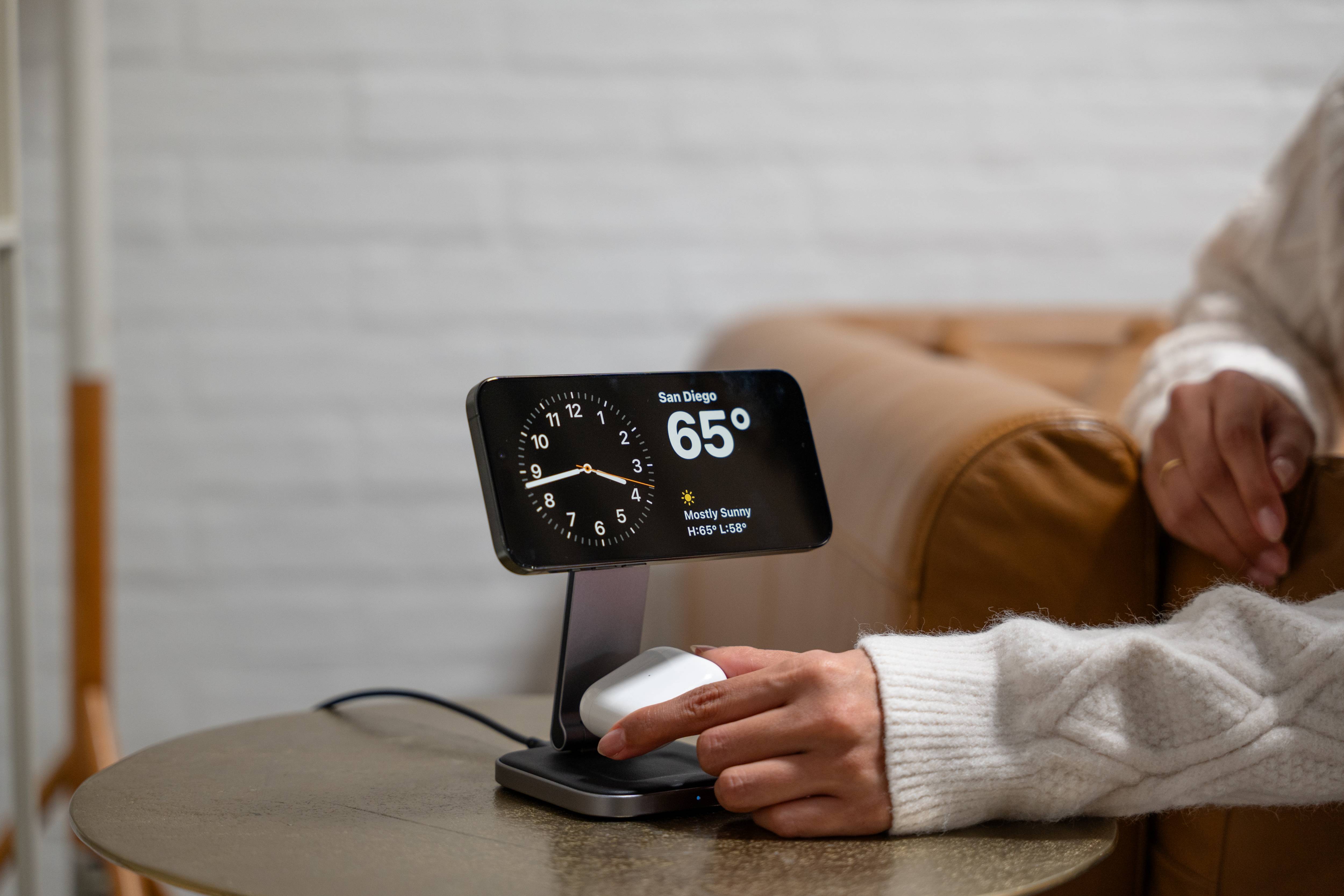 Imagine never worrying about your iPhone or AirPods running out of juice, no matter where life takes you. That's the promise of our newest portable powerhouse, the 2-in-1 Foldable Qi2 Wireless Charging Stand. Gone are the days of sluggish charging: with twice as much power delivery as traditional Qi chargers, your iPhone will be back to full battery in the blink of an eye. A secure magnetic connection ensures your devices stay safe and secure while charging, while its compact, foldable design makes the 2-in-1 equally convenient for at-home or on-the-go use. Plus, with StandBy mode support in iOS 17, accessing useful information has never been easier. What are you waiting for? The 2-in-1 is here to make your life that much easier.