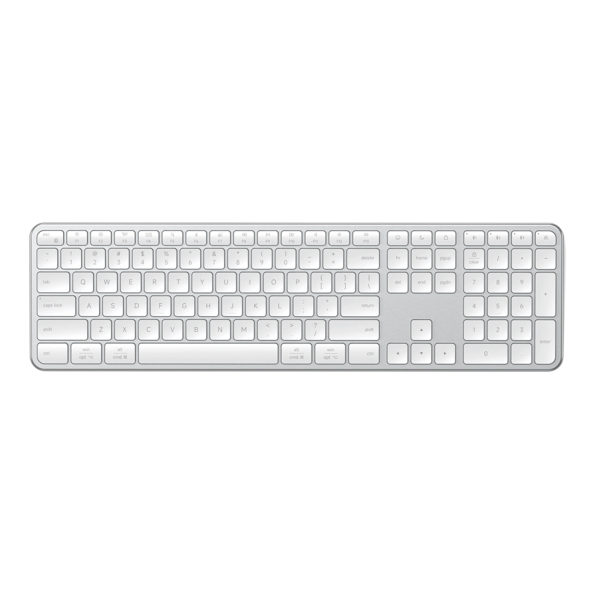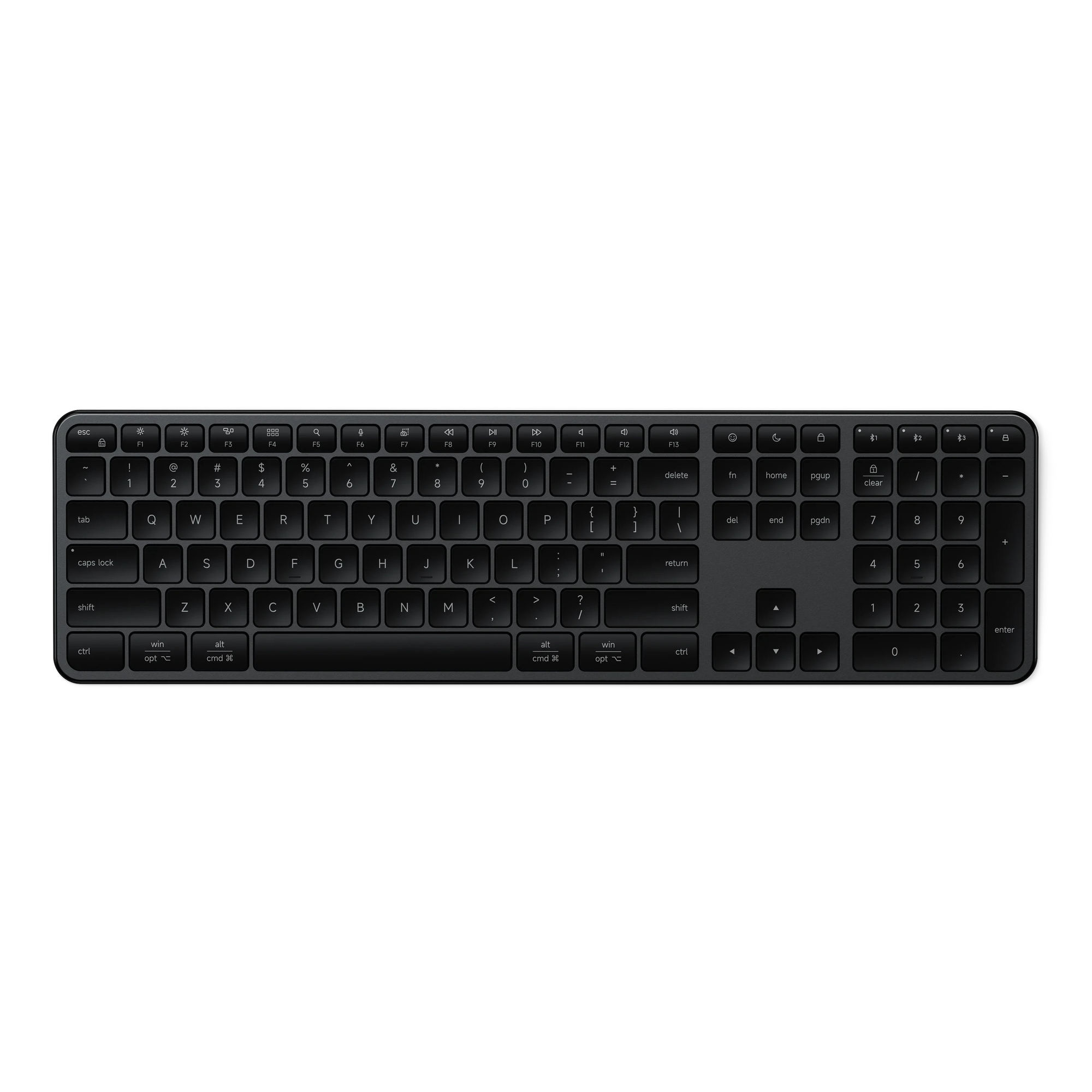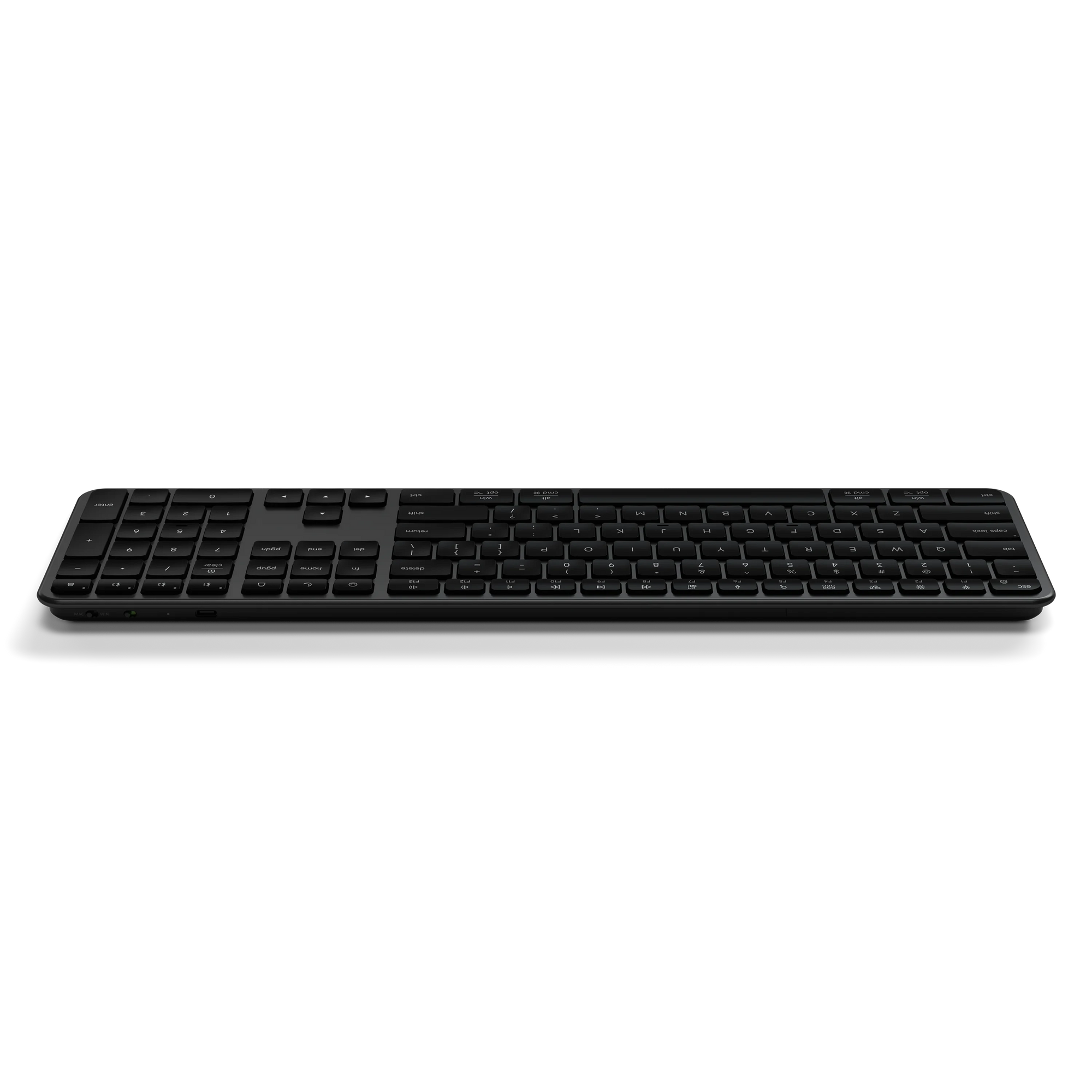 Flip the OS switch to reconfigure the keyboard for Mac or Windows—keys and controls align instantly.