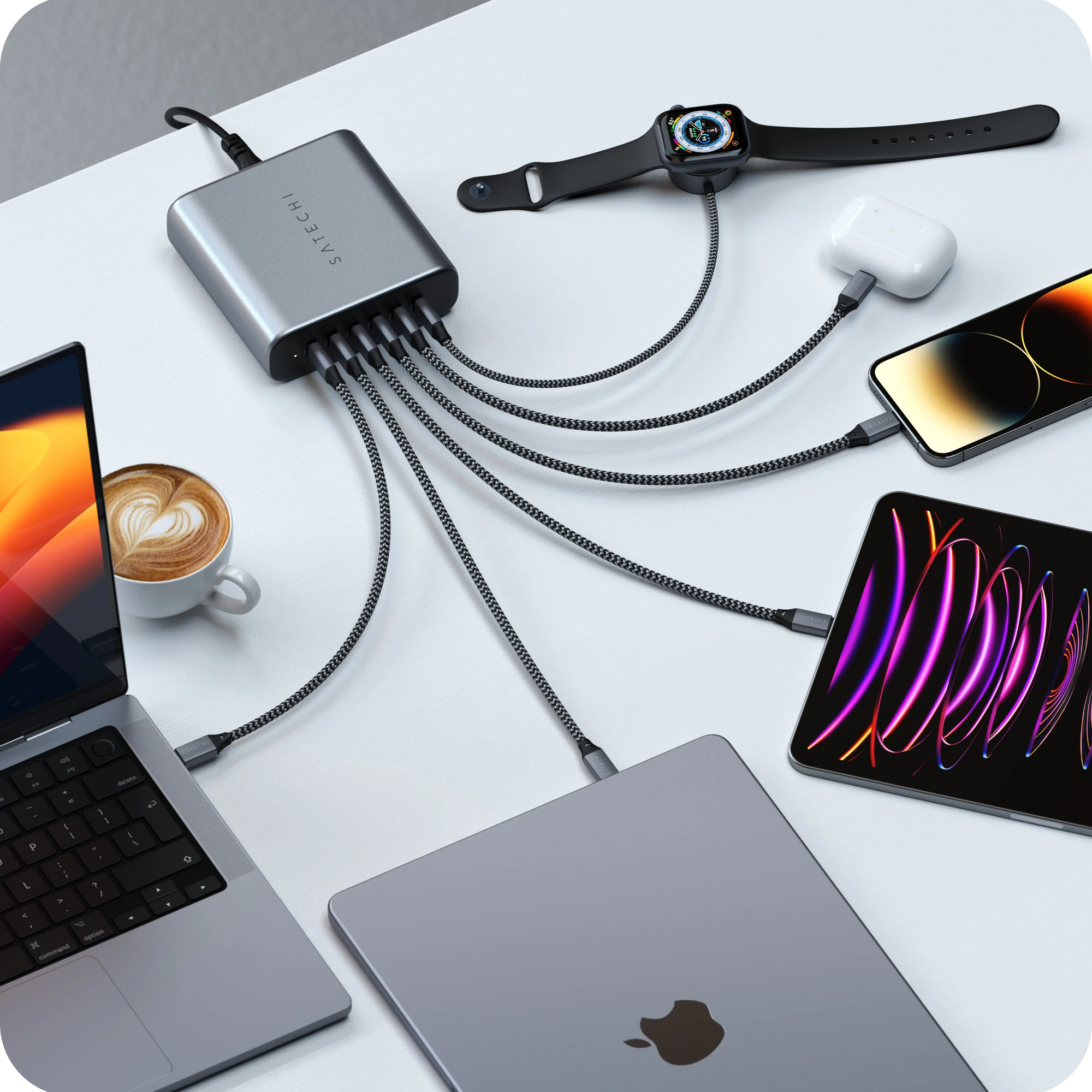 Our GaN chargers are designed with your needs in mind. Easily charge your MacBook Pro at full speed or your iPad Pro setup on the go.