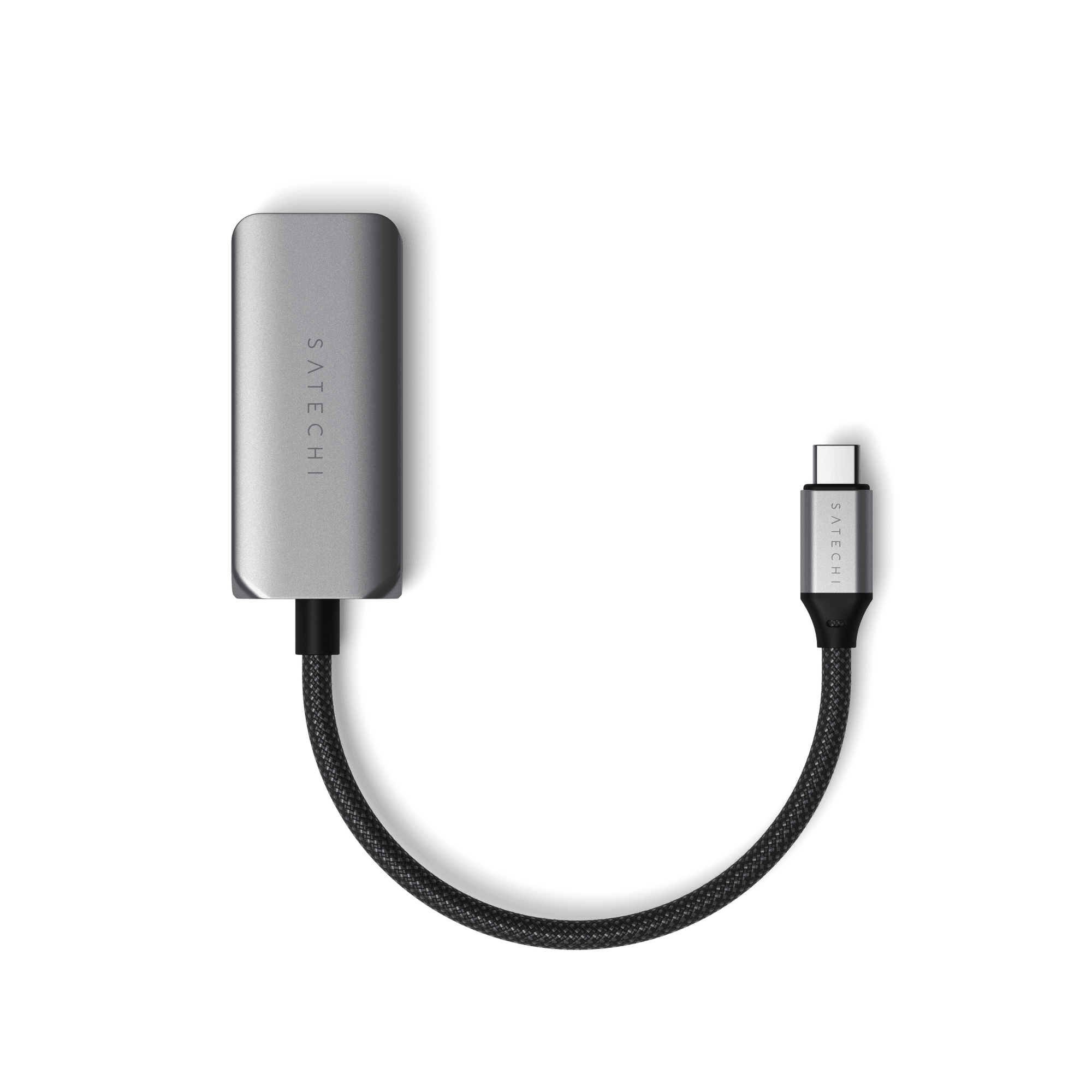 The Satechi USB-C to HDMI 2.1 8K Adapter features a sleek aluminum enclosure, a tangle-free braided cable, and a durable reinforced neck. A slimmer, rounder, more compact USB-C connector facilitates an improved connection with devices in protective cases.