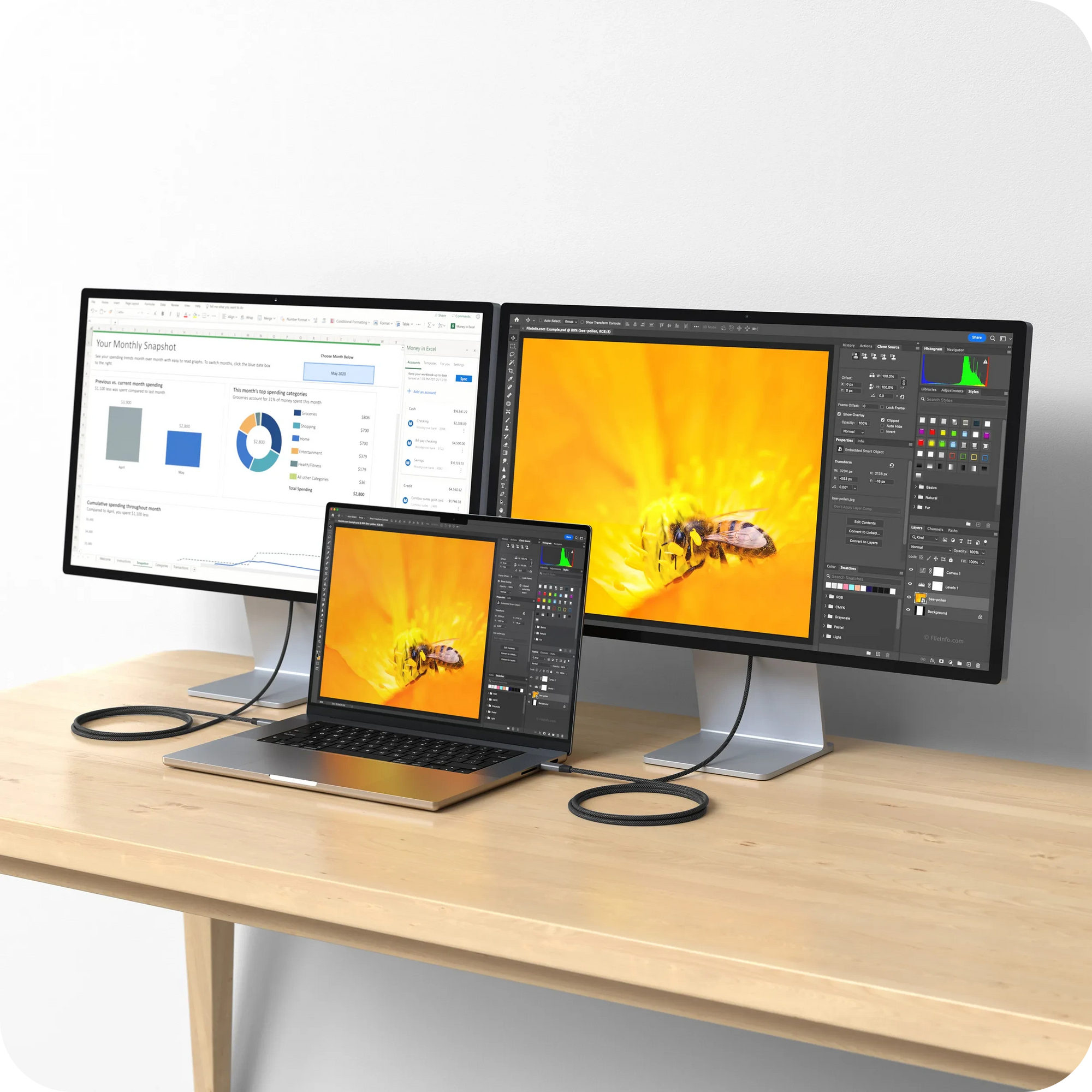 The USB4 Pro Cable features a durable black braided design that coils without tangling for easy usage, storage, and extended longevity. It pairs perfectly with all Satechi wall and desktop chargers and all Apple power adapters.
